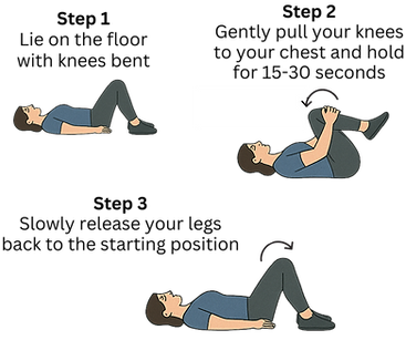 Gently pull both knees towards your chest until you feel a comfortable stretch in your lower back and hips. Hold for 15-30 seconds.